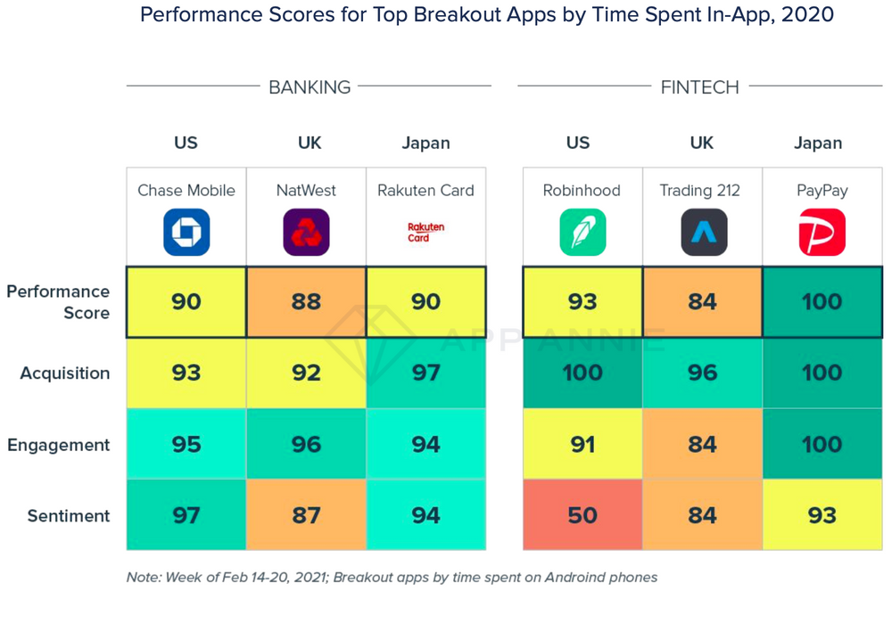 - By session, the best fintech apps outperform the best banking apps by up to 10.8x